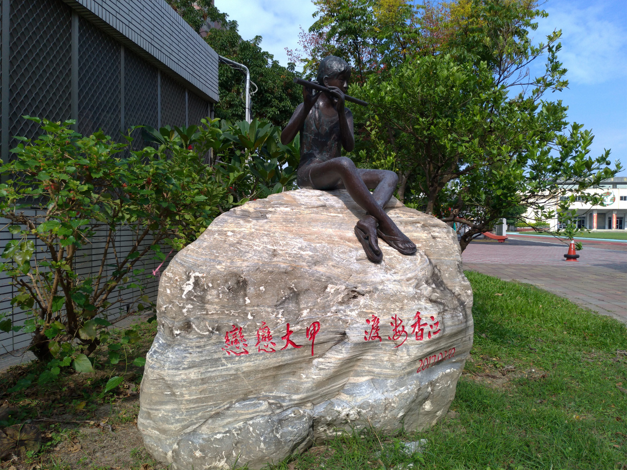 欣逢大甲國小60周年校慶,特禮聘奇美博物館主展館頂榮耀天使的原創藝術家旅居加拿大的楊明忠大師,以傳神寫實的技法,雕塑出大甲孩子純真無邪及對國樂醉心與榮耀的故事。「醉樂」、「聽見花開的聲音」、「水月琵琶」、「戀戀大甲」共四件青銅鑄造作品與校園景觀相互輝映,作為呈現給大甲國小六十周年校慶的生日禮物!傳遞出大甲注重美學教育的用心,更與您分享音樂、藝術美的力量。
