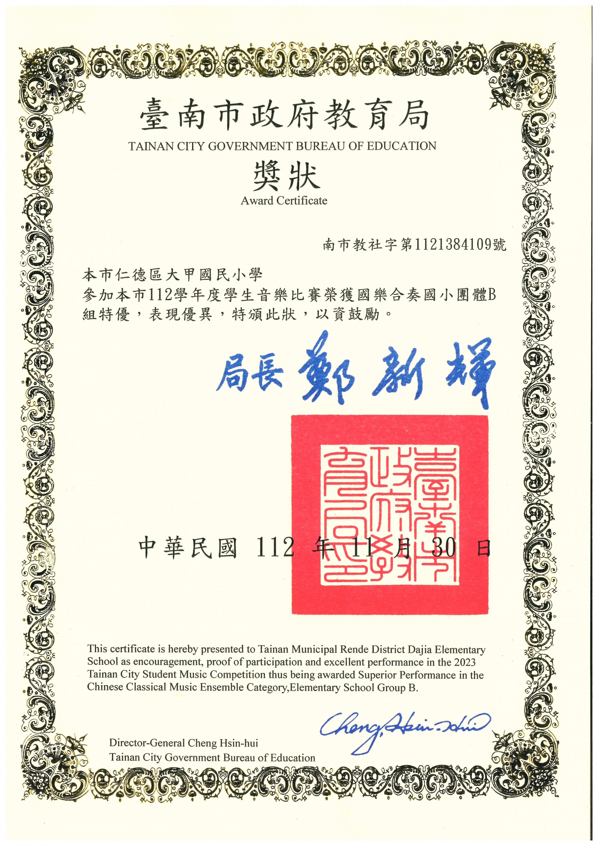 本校國樂團參加「112 學年度臺南市學生音樂比賽」榮獲
