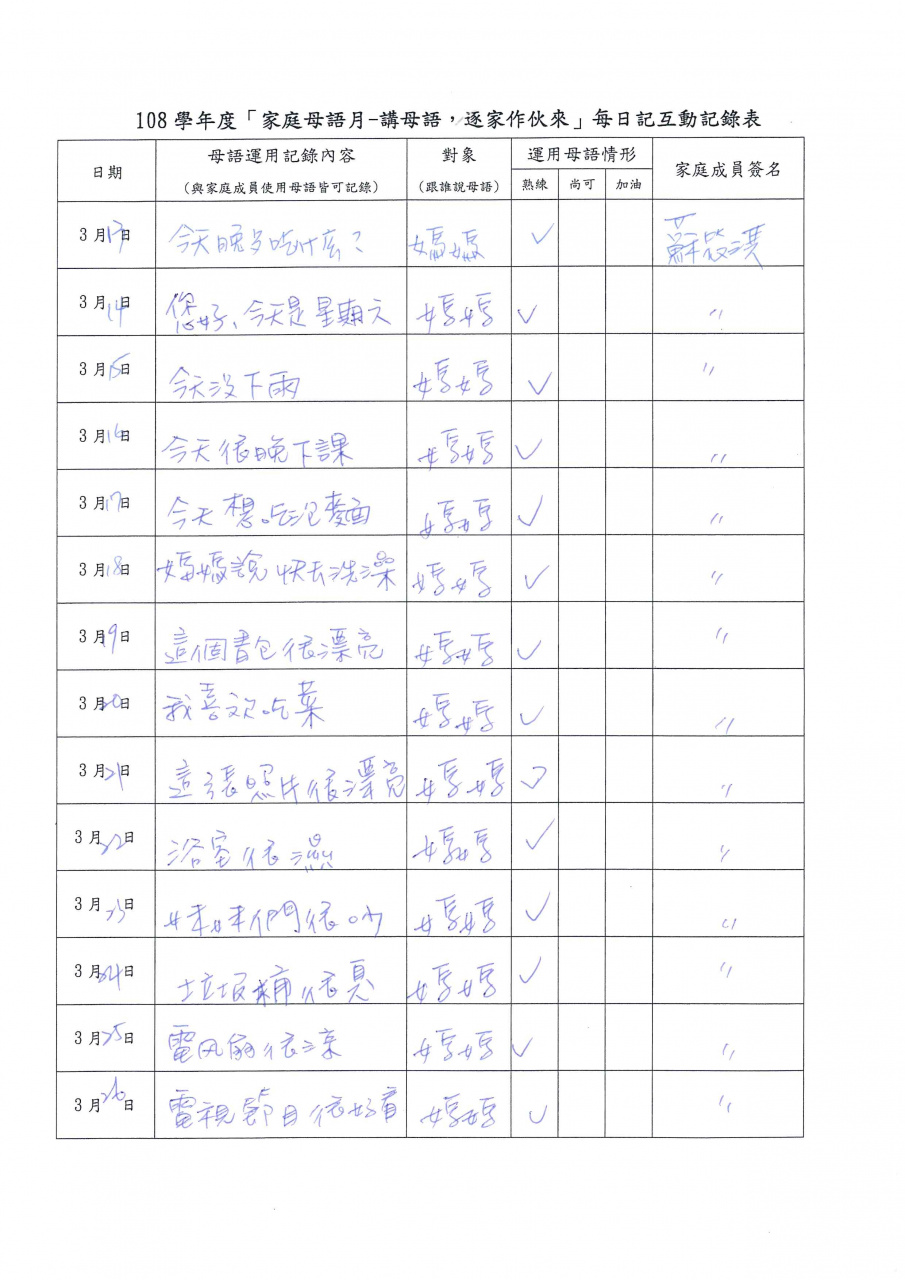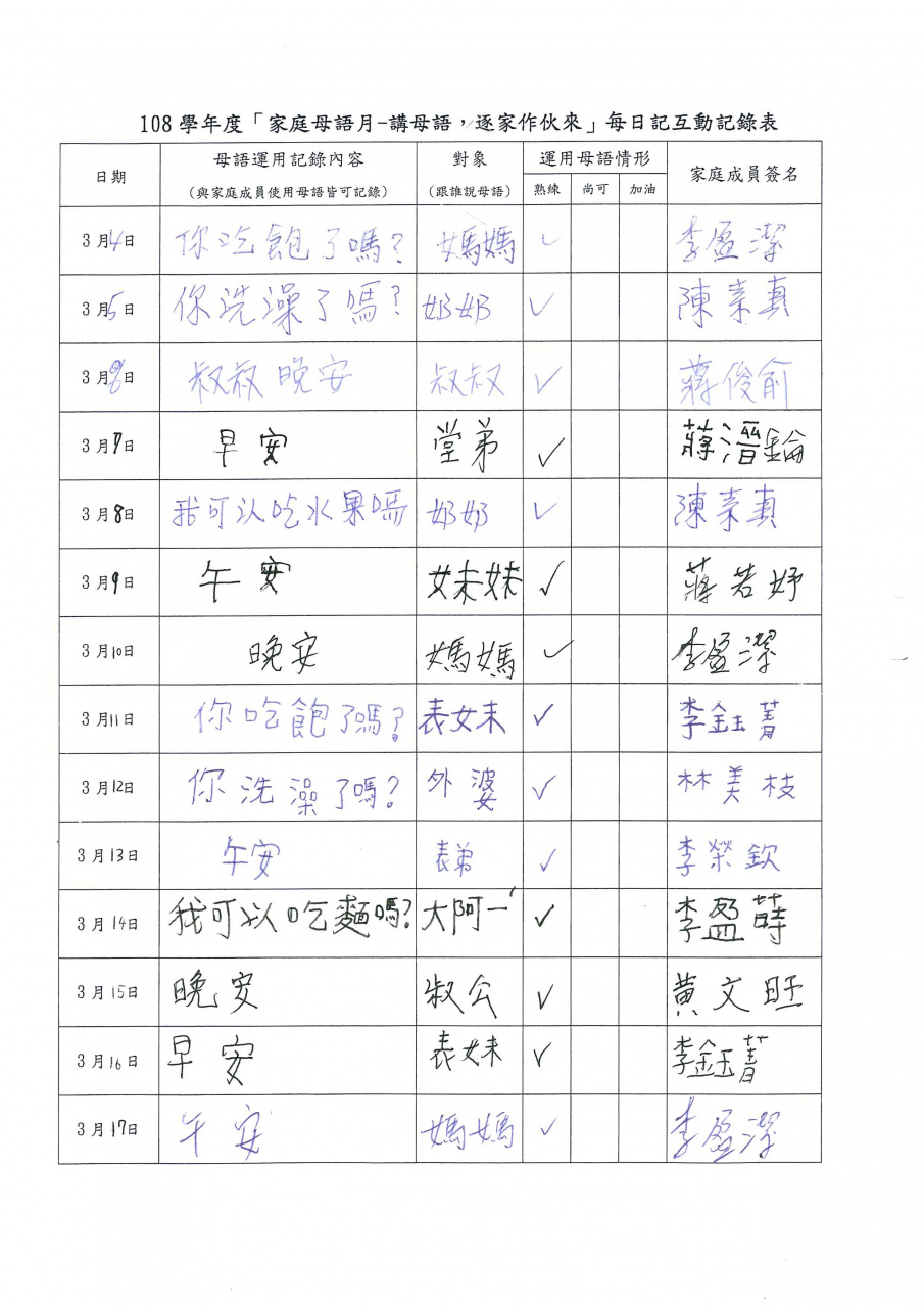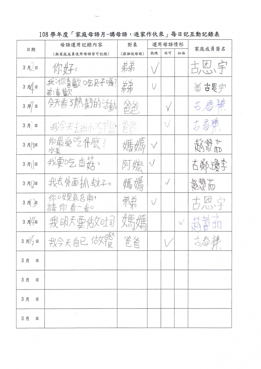 推動母語教學活動--家庭母語月